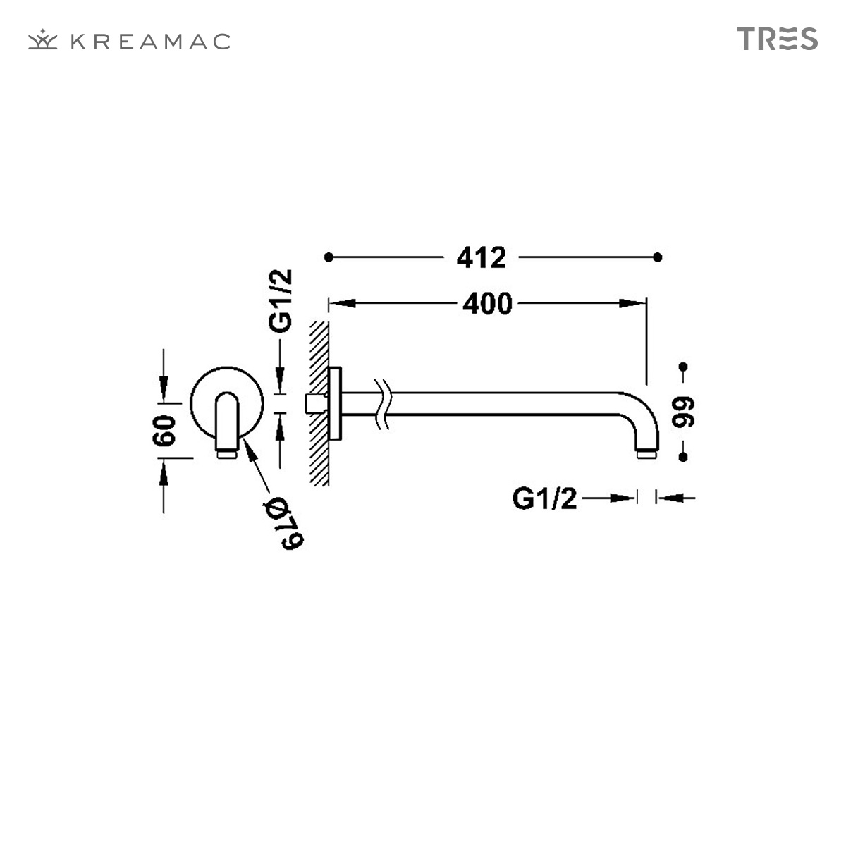 BRAZO DE DUCHA A PARED 40CM ACERO INOX