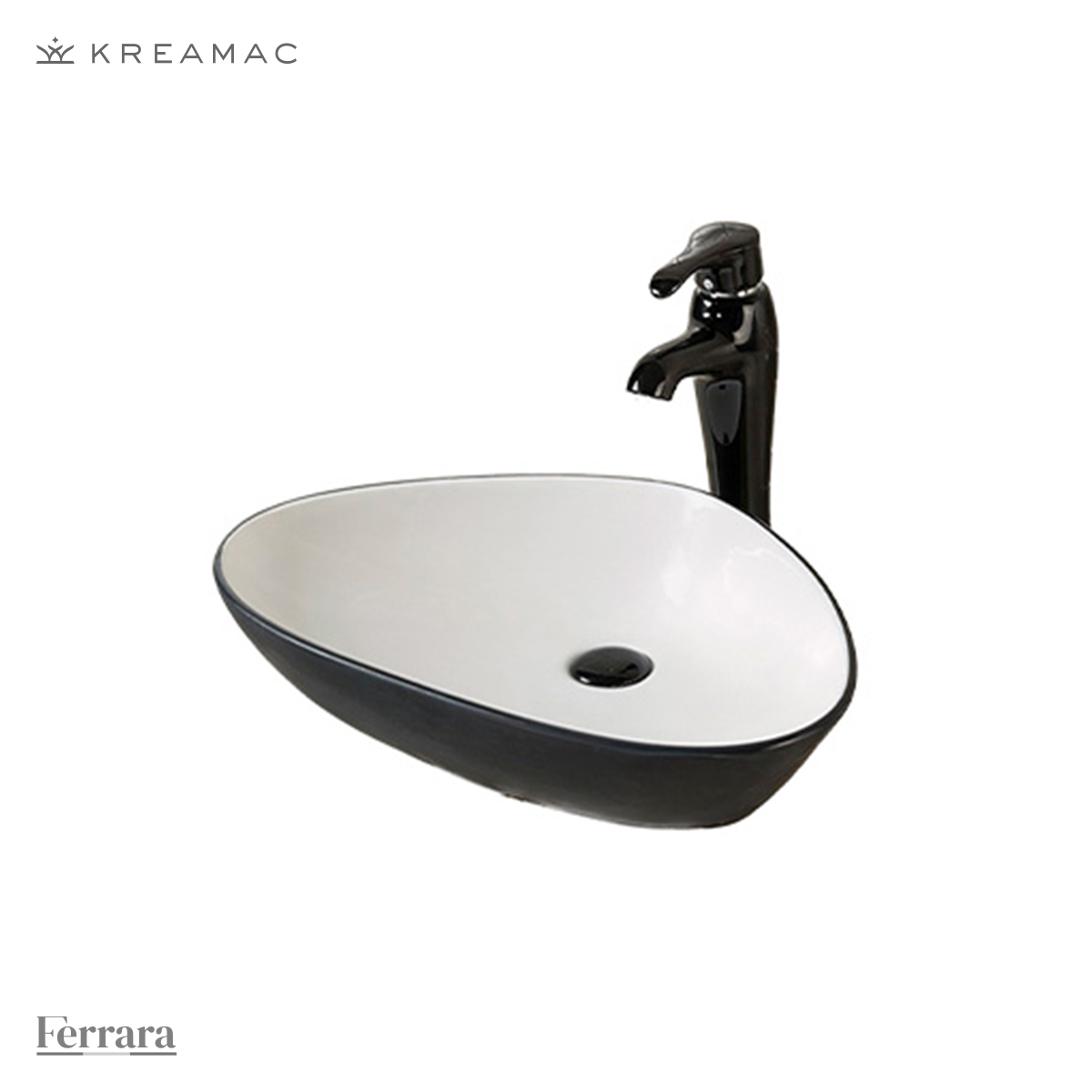 Lavamanos de sobreponer Tiziano blanco con negro, pensado para quienes buscan estilo, funcionalidad y personalidad en el baño. Su combinación bicolor aporta un contraste elegante, mientras que su instalación sobre encimera permite un acabado limpio y moderno.